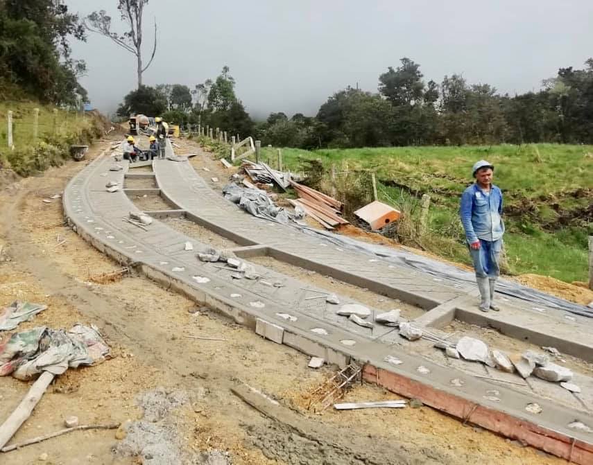 Avanzamos en la construcción de la Placa Huella en la Vereda Lagunitas, Cuenca del Río Sumapaz; son dos tramos construidos: el primero, tiene 340 metros lineales y el segundo, 170 metros lineales aproximadamente.