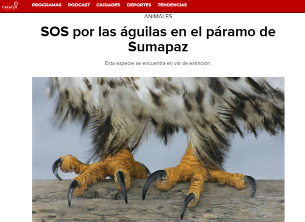 La Alcaldía Local de Sumapaz hizo un llamado a la personas que ocasionalmente visitan el páramo y a los residentes, para que protejan este lugar y a las águilas que lo habitan, Francy Murcia alcaldesa de la localidad argumenta que esta especie es símbolo del territorio y se debe contribuir a su protección.