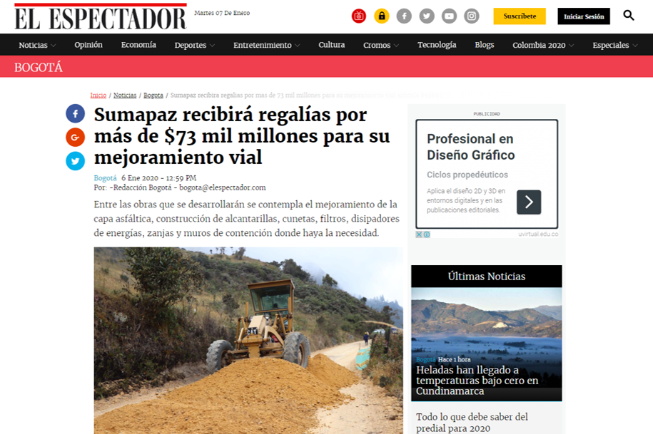 Fuente: Diario El Espectador / https://www.elespectador.com/noticias/bogota/sumapaz-recibira-regalias-por-mas-de-73-mil-millones-para-su-mejoramiento-vial-articulo-898667