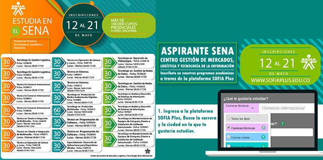 Durante nueve días los interesados podrán obtener uno de los más de 50 mil cupos en el nivel Técnico, cerca de 45 mil en nivel Tecnológico, más de 3.500 en programas para nivel de operario, cerca de 1.500 para nivel de auxiliar, más de 2.600 en especializaciones tecnológicas y alrededor de 500 en profundizaciones técnicas.