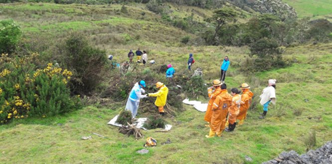La alcaldía local de Sumapaz a través del equipo ambiental , el corregidor de Betania y entidades como la Secretaria Distrital de Ambiente, IDIGER,Secretaria de Gobierno, defensa civil, Ejército Nacional de Colombia, la empresa Restaurar Ingeniería S.A.S y representantes de la comunidad como Everardo Gamba,William Pulido, Orlando Hernández, Gustavo Hernández, Isabel contreras, Martha cabrera, Daniela Suarez, y dueño del predio donde se realizó la actividad Carlos pulido realizaronconjuntamente la erradicaciónde 83 metros cuadrados dela especie arbustiva retamo espinoso en el punto de santa helena límites de la vereda santa rosa y laguna verde.