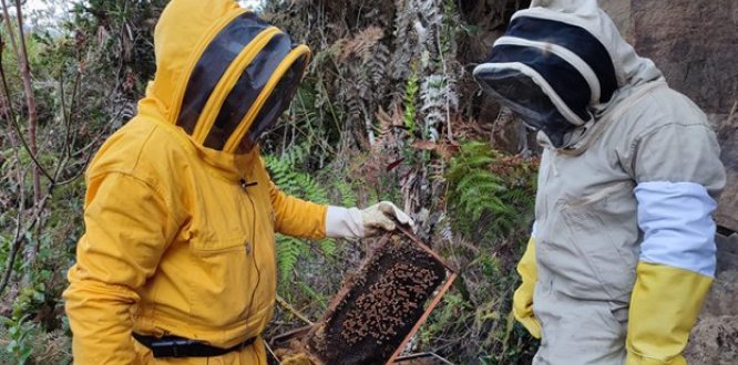 Cuidar y proteger, son las acciones que Nohely pone en práctica para producir su sustento: miel, jalea real y propóleo. Las abejas, le brindan la materia prima para su emprendimiento, que hoy es la despensa de Sumapaz, Bogotá urbana y Cundinamarca.