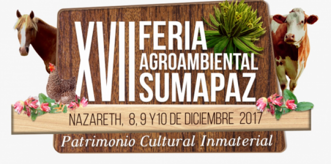 Durante los días 8,9 y 10 de diciembre de 2017, se llevará a cabo la versión número XVII de la Feria Agroambiental de Sumapaz, icono de reconocimiento al patrimonio cultural inmaterial del campesino Sumapaceño representado en sus prácticas artesanales pecuarias, agrícolas, y a la transmisión del conocimiento intergeneracional en el uso de prácticas tradicionales y técnicas artesanales en los procesos productivos.