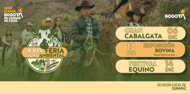 La Alcaldía Local de Sumapaz invita a toda la comunidad a vivir la Vigésima Cuarta Feria Agroambiental, un espacio emblemático que exalta nuestra riqueza agrícola, ambiental y cultural; un encuentro que celebra con orgullo las tradiciones y la identidad de la localidad 100 % rural de Bogotá.